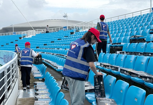 為確保在蘇超賽場上提供高效服務(wù),在市體育中心競賽辦公室的指導(dǎo)下,服務(wù)隊志愿者14名提前一天參加培訓(xùn),深入了解賽區(qū)整體布局、賽事流程、志愿者行為規(guī)范、安全須知等。31日上午,志愿者們提前到達(dá)預(yù)定崗位,圓滿完成觀賽禮包發(fā)放、服務(wù)引導(dǎo)、供水服務(wù)等工作,為2.7萬名觀眾順利進(jìn)場做好保障。